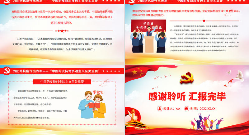 攜手共建人類衛生健康共同體PPT世界各界人士共同抗擊疫情專題黨課課件模板