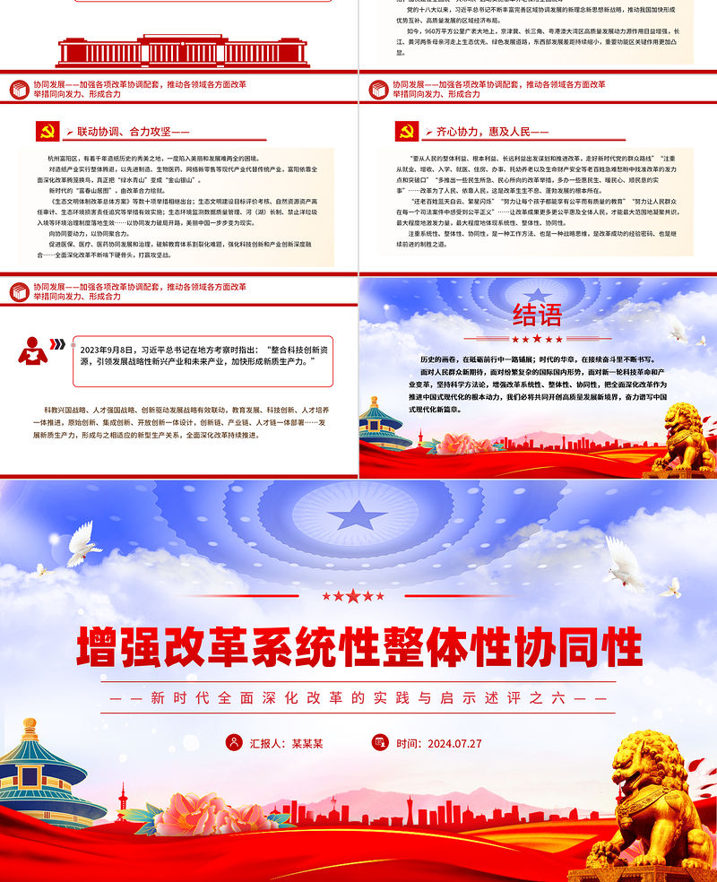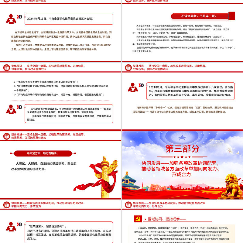 增強改革系統性整體性協同性PPT紅色簡潔新時代全面深化改革的實踐與啟示述評之六