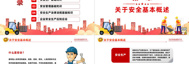 0102030405目錄安全生產(chǎn)基礎知識安全管理基礎知識安全生產(chǎn)法律法規(guī)基礎知識企業(yè)安全生產(chǎn)應知應會 關(guān)于安全基本概述
