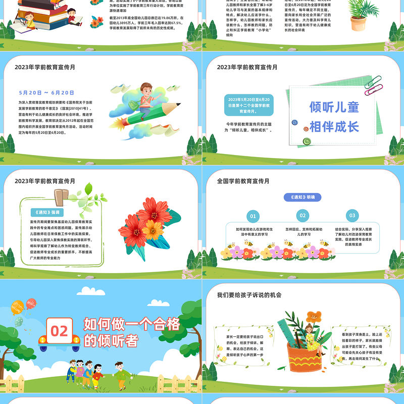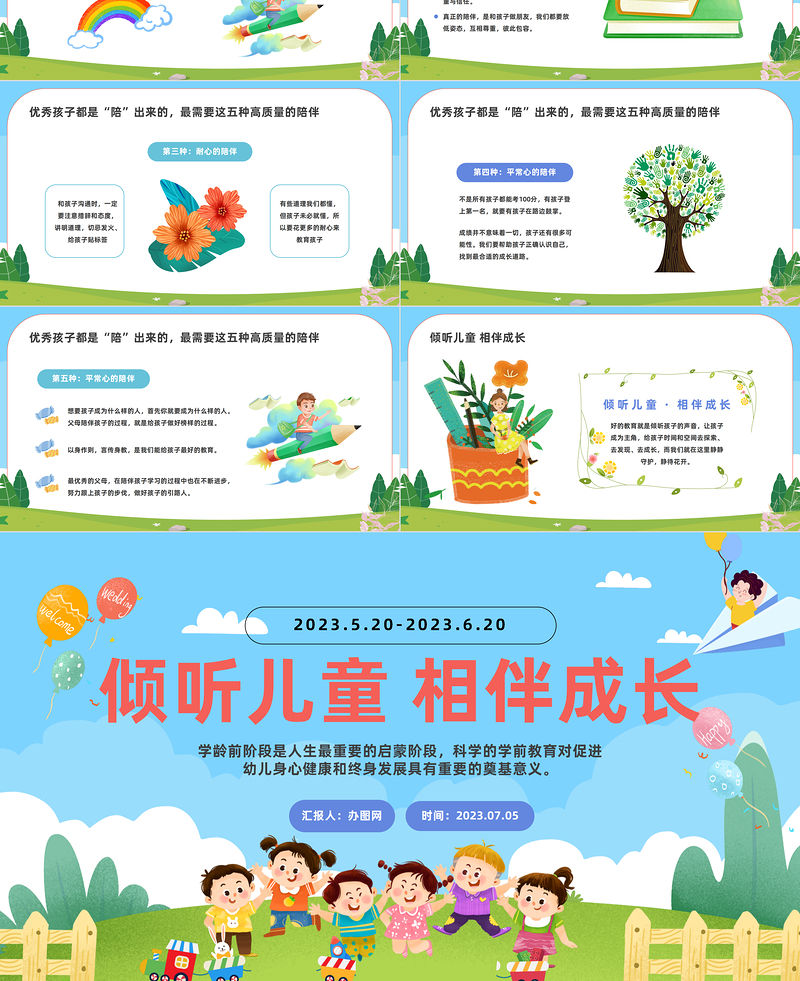 2023傾聽兒童相伴成長PPT清新風學前教育宣傳月主題課件模板下載