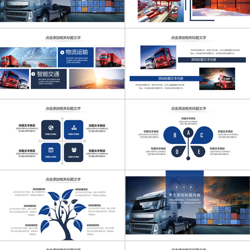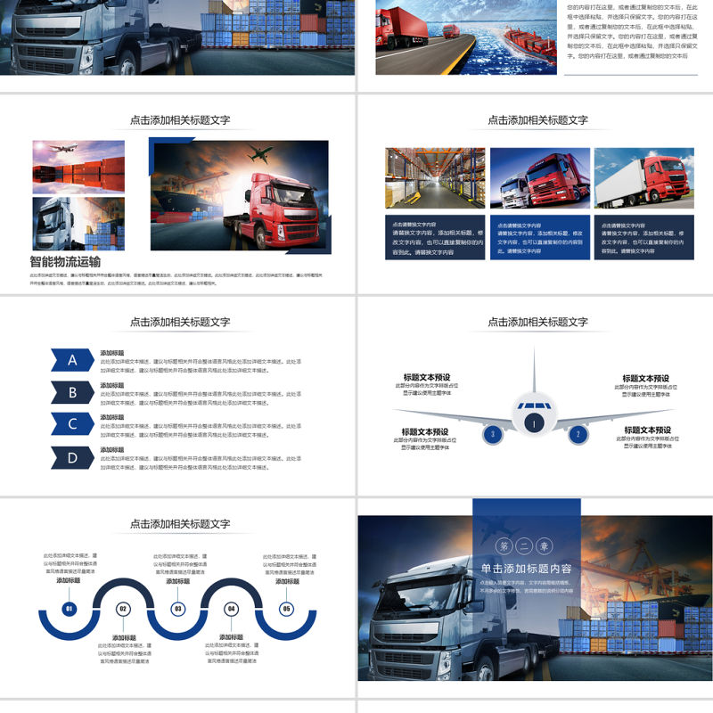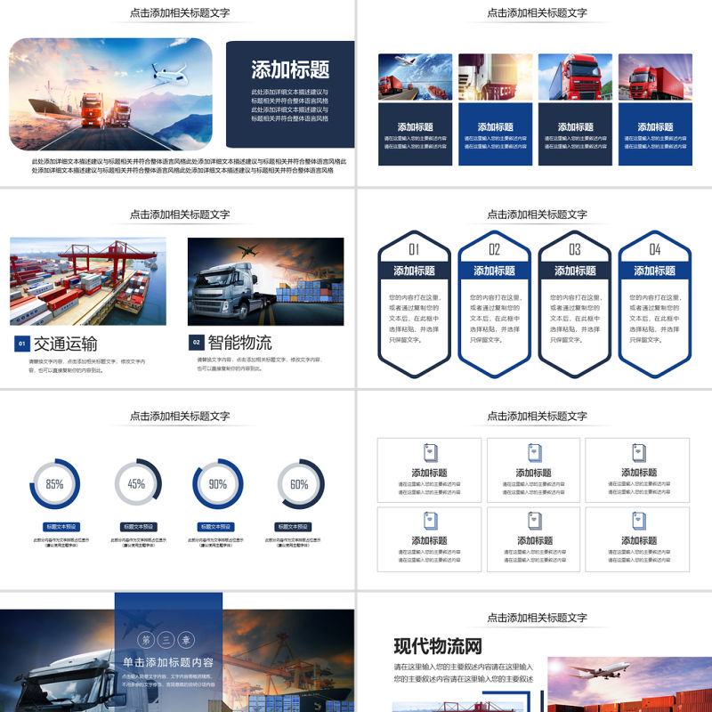 原創現代物流交通運輸快遞海陸空運輸PPT模板-版權可商用