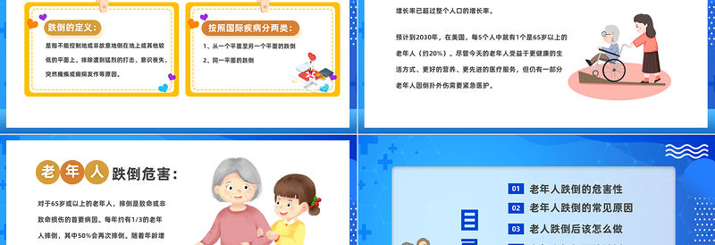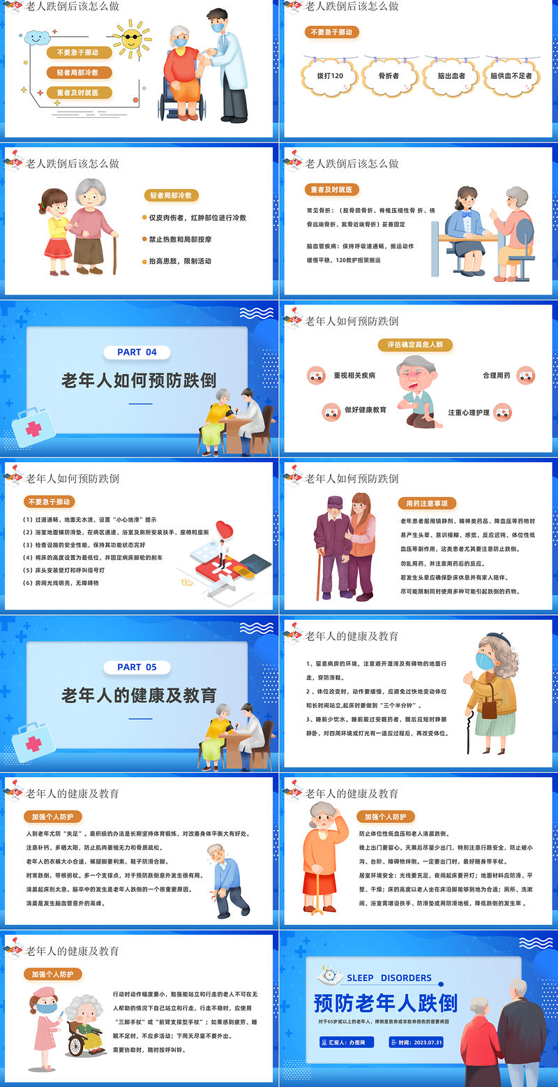 2023預防老年人跌倒PPT卡通風預防老年人跌倒醫療科普宣傳課件模板下載