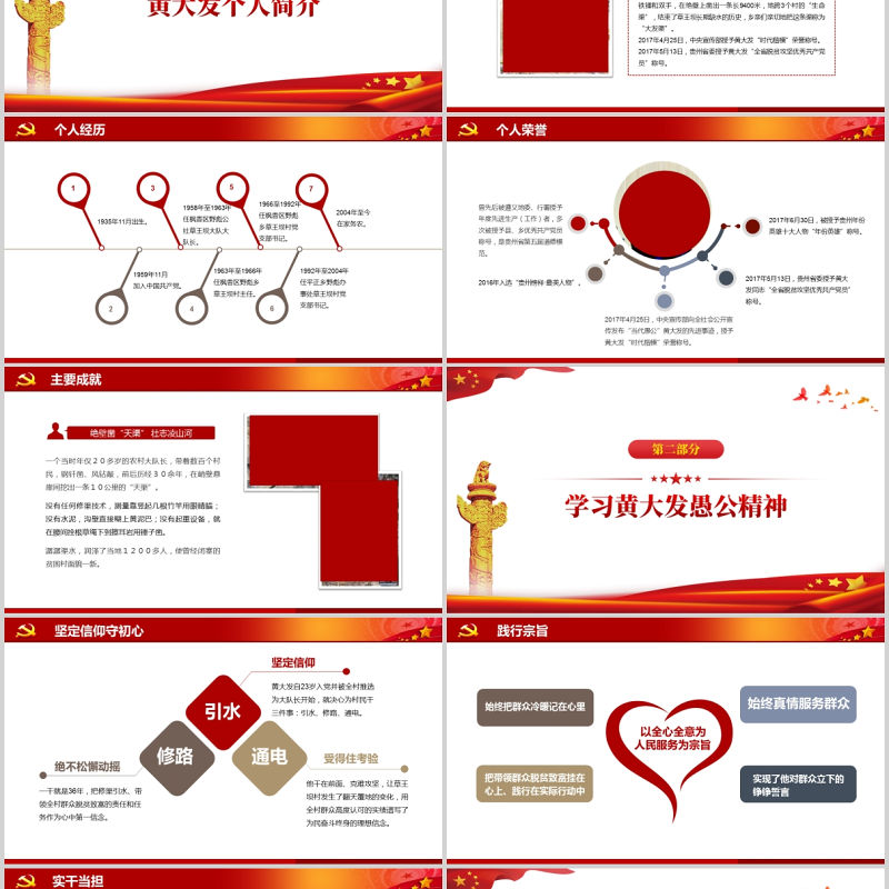 黨政工作 黨政模板 工作模板 中國 黨政 建黨 中國風(fēng) 黨政PPT 黨課PPT 微黨課 黃大發(fā) 中國精神 脫貧攻堅 脫貧 黃大方精神 黨政工作 工作匯報 政府 絕壁天渠映學(xué)習(xí) “七一勛章”獲得者 Array