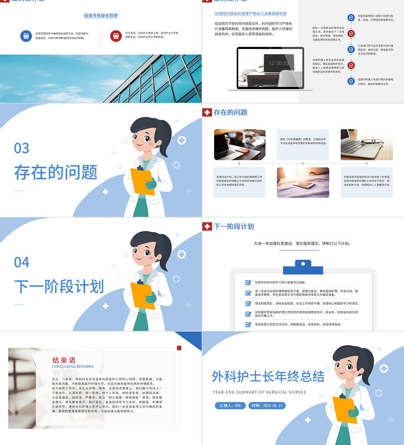 2022外科護士長年終總結PPT簡約風醫(yī)院護士長年終工作總結匯報課件模板 Array
