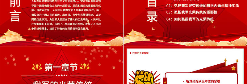 02:弘揚(yáng)我軍光榮傳統(tǒng)的科學(xué)內(nèi)涵與精神實(shí)質(zhì)03:弘揚(yáng)我軍光榮傳統(tǒng)的重要性01:我軍的光榮傳統(tǒng)目錄04:如何弘揚(yáng)我軍的光榮傳統(tǒng)