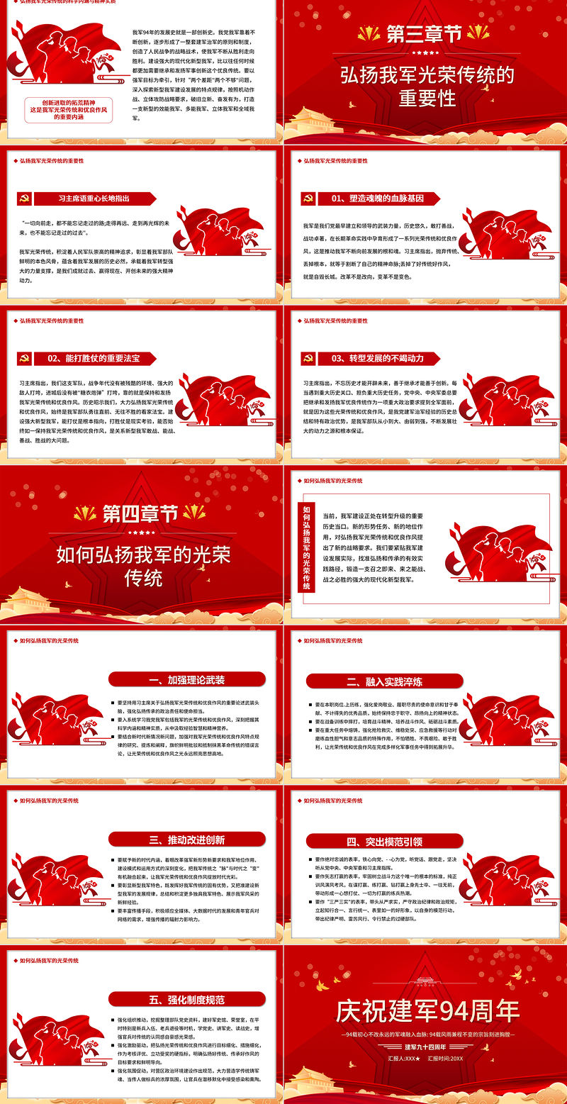 慶祝建軍94周年—94載初心不改永遠(yuǎn)的軍魂融入血脈: 94載風(fēng)雨兼程不變的宗旨刻進(jìn)胸膛—匯報(bào)人:XXX★ 匯報(bào)時(shí)間:20XX