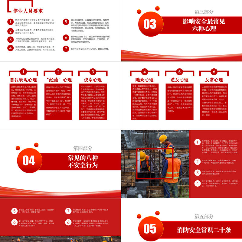 2作業人員的安全須知目錄3影響安全最常見六種心理4常見的八種不安全行為12020年“安全生產月”精神5消防安全常識二十條6安全警示標志