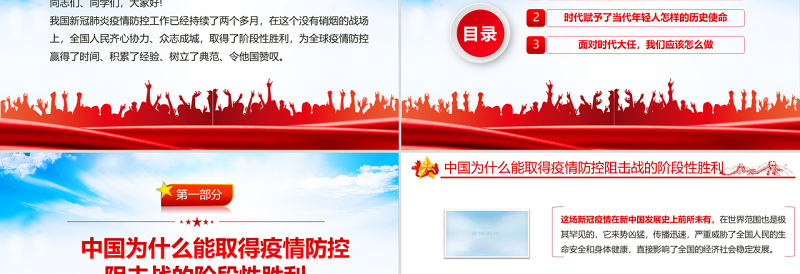 五四精神傳承有我PPT精美風戰疫情奏響新時代的青春之歌專題團課課件模板
