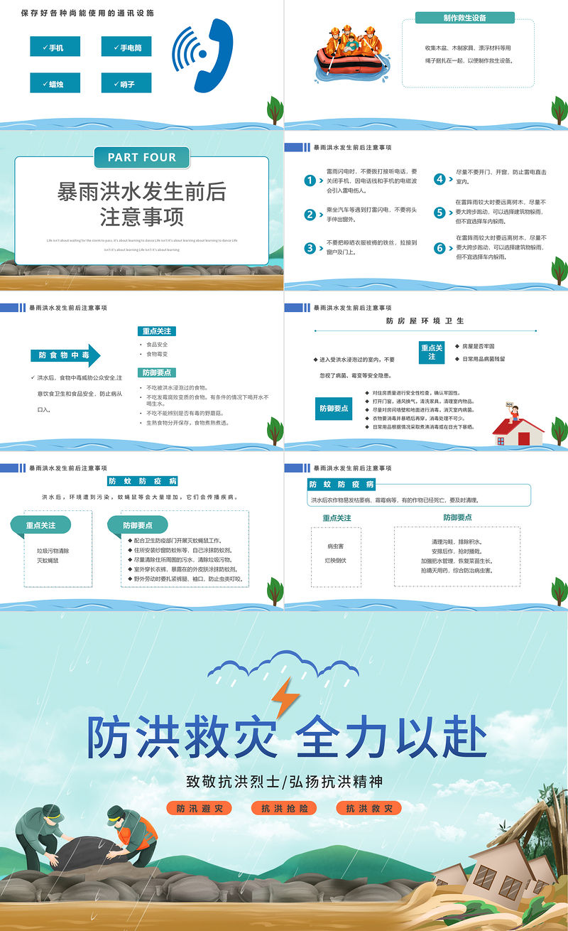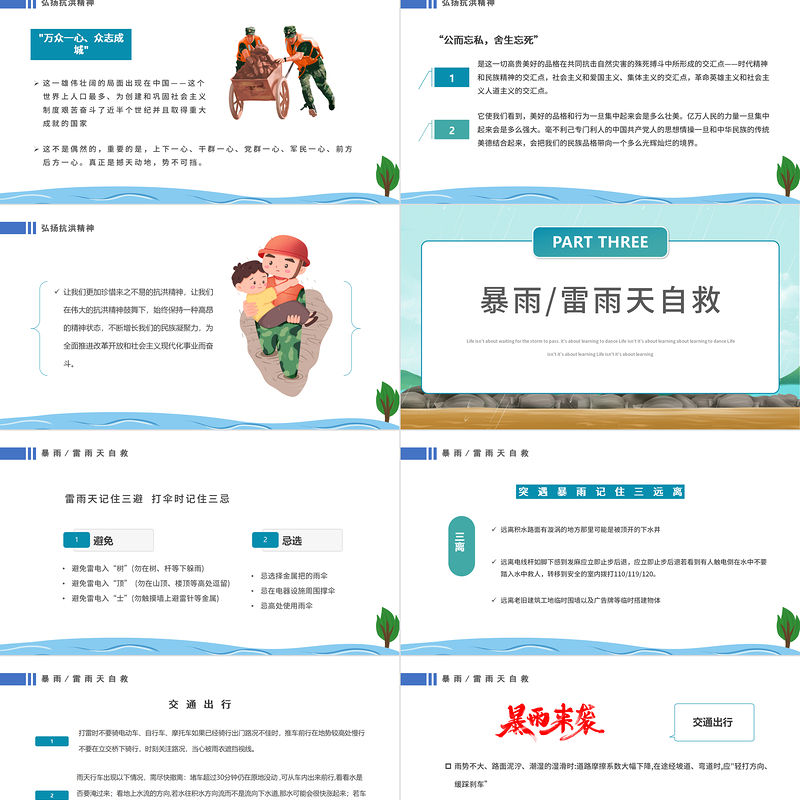 2022防汛救災(zāi)全力以赴PPT卡通風(fēng)防洪救災(zāi)主題班會課件模板