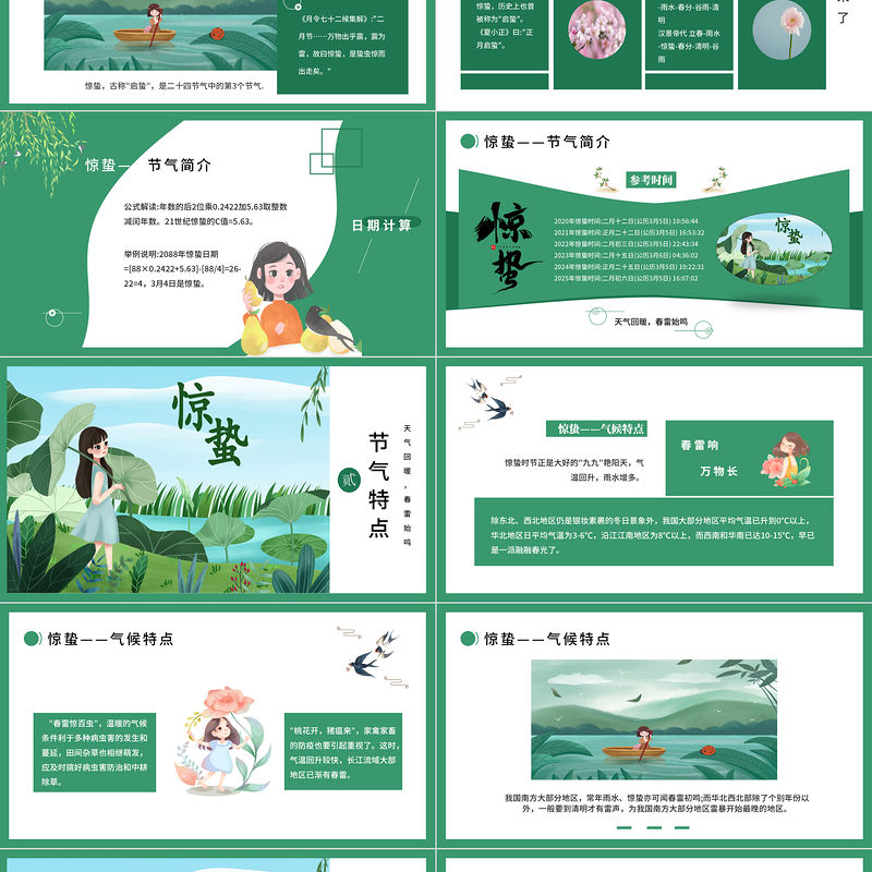 驚蟄節氣PPT清新插畫風中國傳統二十四節氣介紹下載
