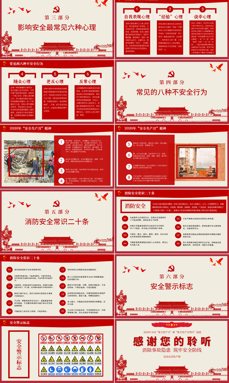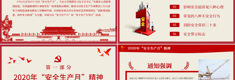 2020年“安全生產月”精神0 102作業人員的安全須知03影響安全最常見六種心理04常見的八種不安全行為目錄05消防安全常識二十條06安全警示標志