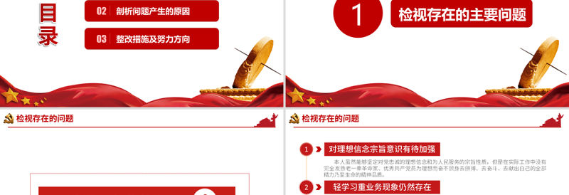 政治紀律和政治規矩方面存在的主要問題01通過近年來的不斷學習,黨委班子成員對政治紀律和政治規矩的認識有所提升。但對照《準則》《條例》從嚴要求,還存在遵守政治紀律態度不夠堅決。政治敏感性不強,對黨員干部的教育不足,有的干部在公開場合口無遮攔,對黨的路線方針政策說三道四,甚至捕風捉影;還有的對社會上、網絡上出現的一些政治謠言和錯誤言論,不抵制、不斗爭,甚至隨聲附和。個別成員存在不按要求報告等問題,有時存在找不到人現象或會前臨時補假的現象。