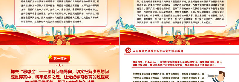 以自我革命精神抓實抓牢黨紀學習教育PPT簡約風全黨開展黨紀學習教育工作課件模板 Array