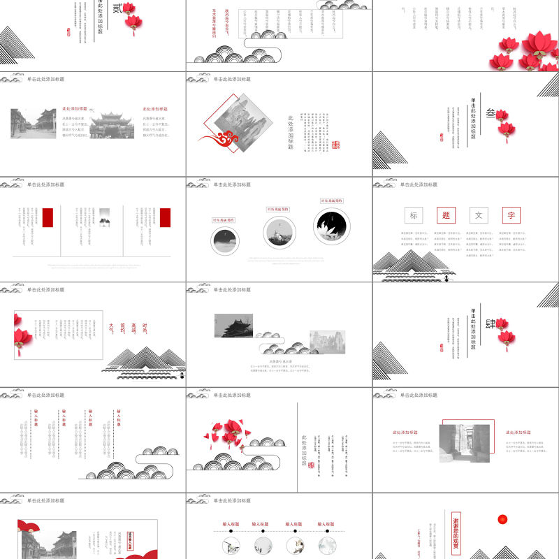 中國風簡約乘風破浪年終工作總結PPT模板包含