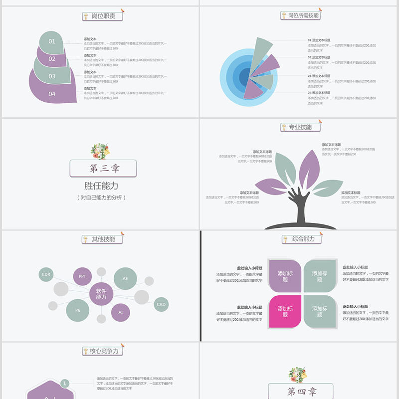 崗位所需技能01.添加文本標題添加適當的文字,一頁的文字最好不要超過200,添加適當的文字02.添加文本標題添加適當的文字,一頁的文字最好不要超過200,添加適當的文字03.添加文本標題添加適當的文字,一頁的文字最好不要超過200,添加適當的文字04.添加文本標題添加適當的文字,一頁的文字最好不要超過200,添加適當的文字