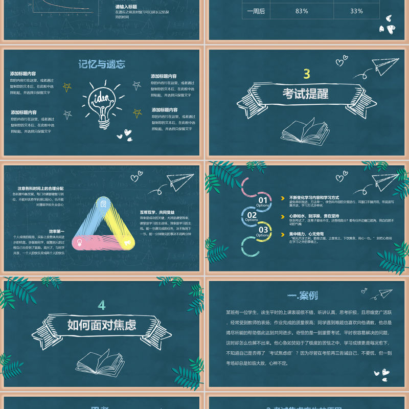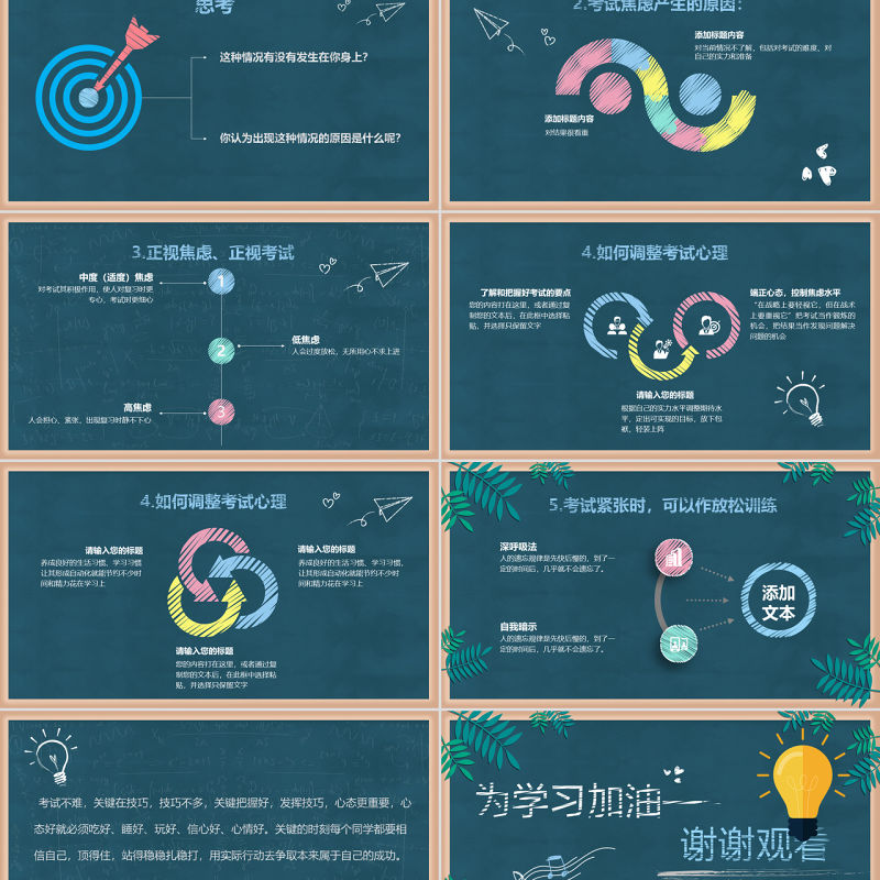 2.考試焦慮產(chǎn)生的原因:對當(dāng)前情況不了解,包括對考試的難度、對自己的實(shí)力和準(zhǔn)備對結(jié)果很看重添加標(biāo)題內(nèi)容添加標(biāo)題內(nèi)容