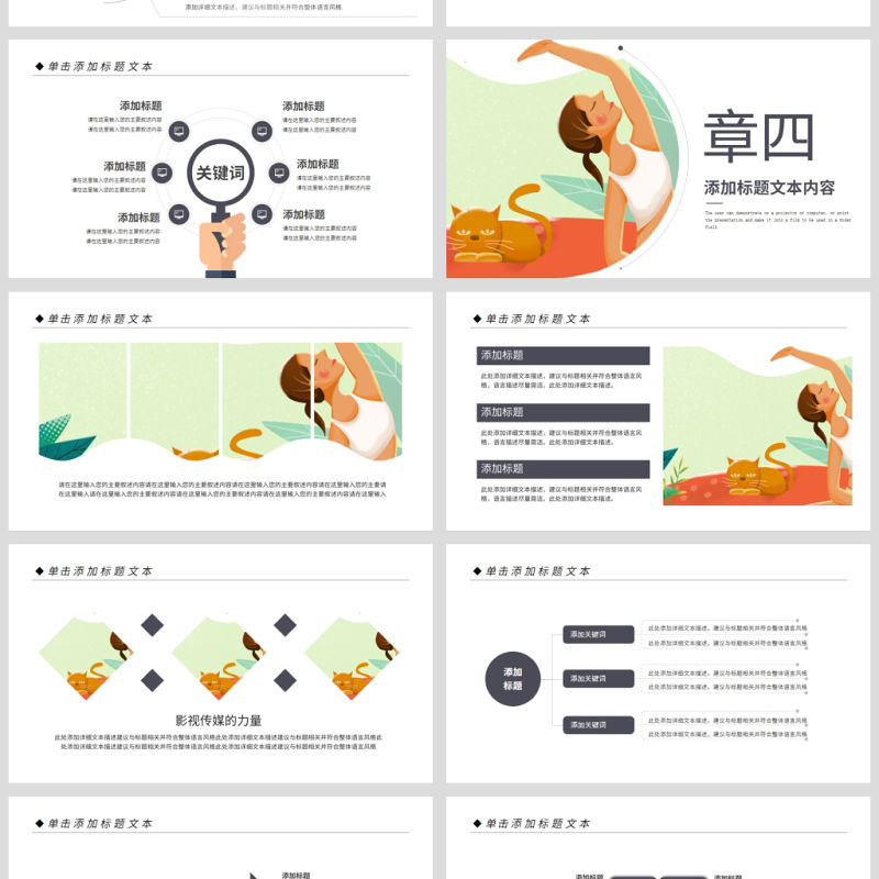 原創精美時尚瑜伽健身瑜伽運動孕婦瑜伽PPT模板-版權可商用