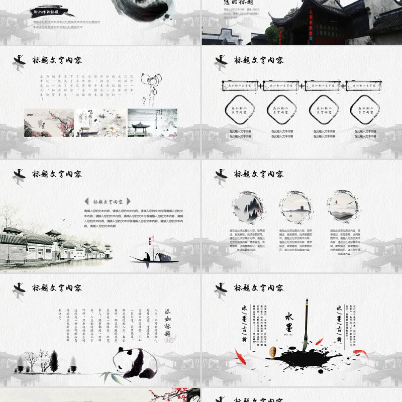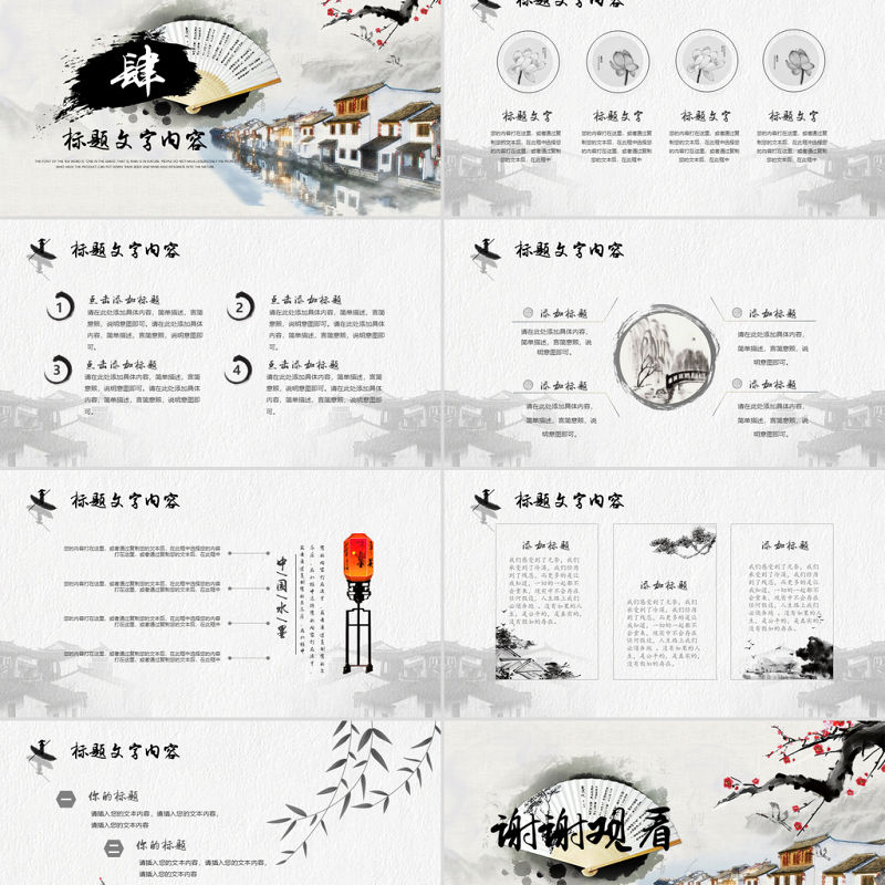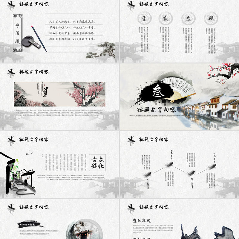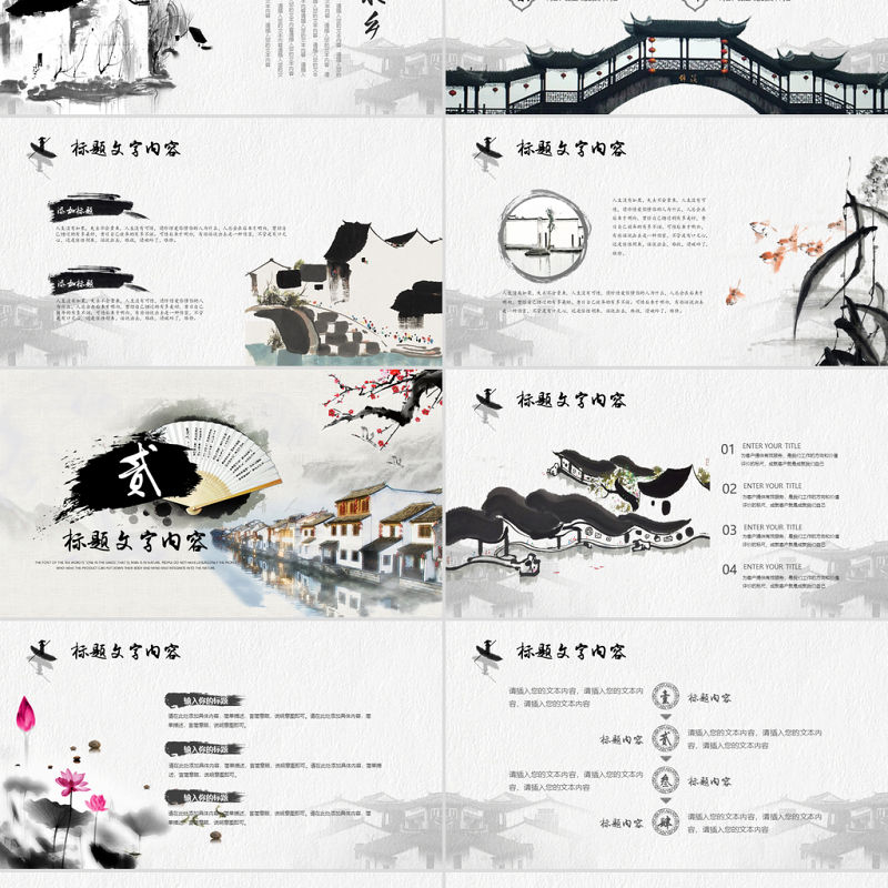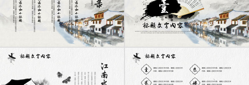 原創中國風水墨江南水鄉古色古香古建筑PPT-版權可商用
