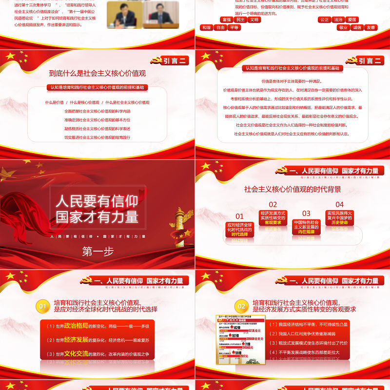 以社會主義核心價(jià)值觀為引領(lǐng)培養(yǎng)擔(dān)當(dāng)民族復(fù)興大任的時(shí)代新人PPT紅色黨政風(fēng)黨員干部學(xué)習(xí)教育專題黨課課件模板包含