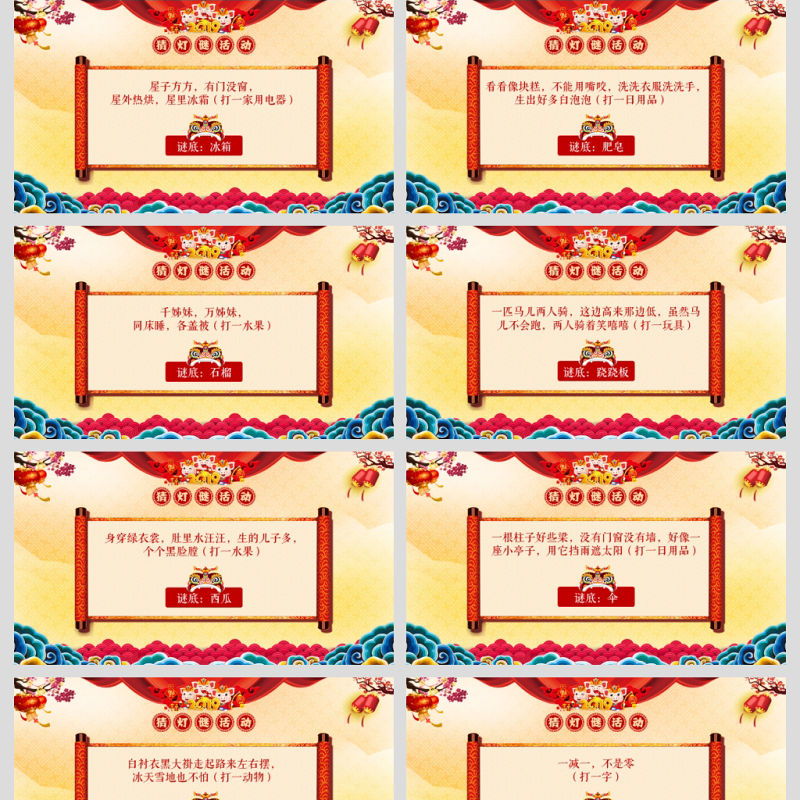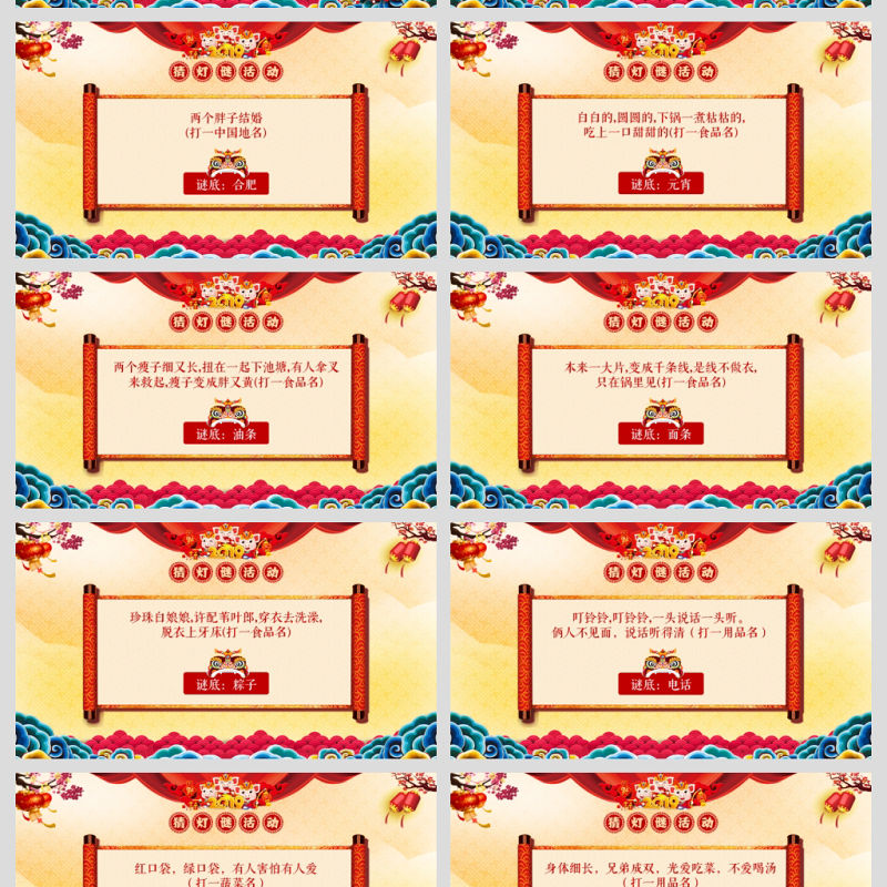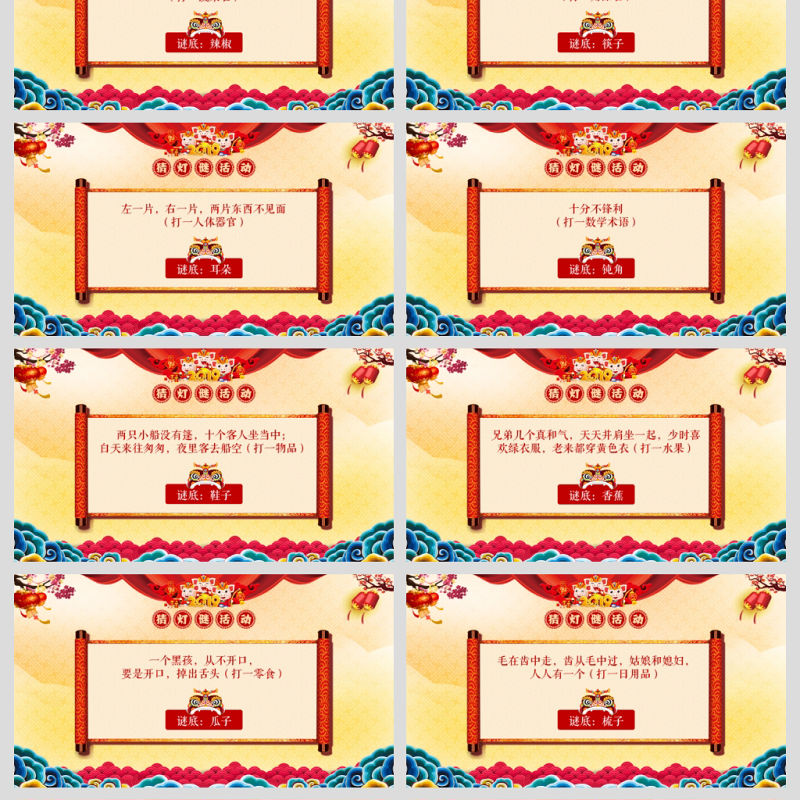 原創(chuàng)中國(guó)風(fēng)新年正月十五鬧元宵節(jié)猜燈謎主題班會(huì)-版權(quán)可商用