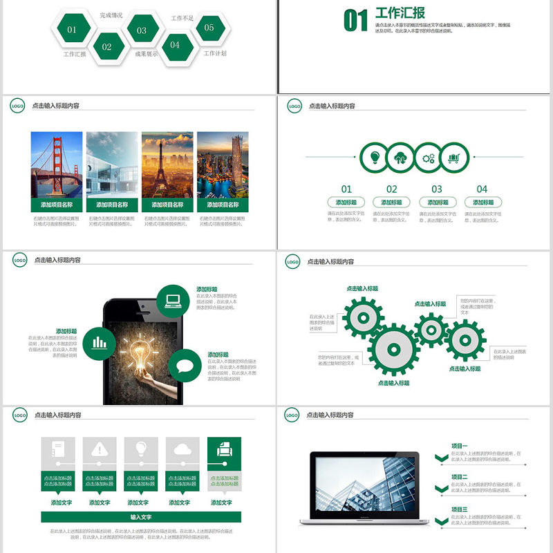 2017年綠色清新郵政銀行通用PPT模板 Array