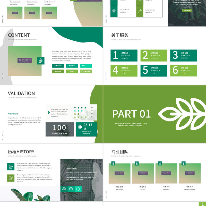 原創(chuàng)抽象綠色自然環(huán)境公司宣傳動(dòng)態(tài)PPT模板-版權(quán)可商用