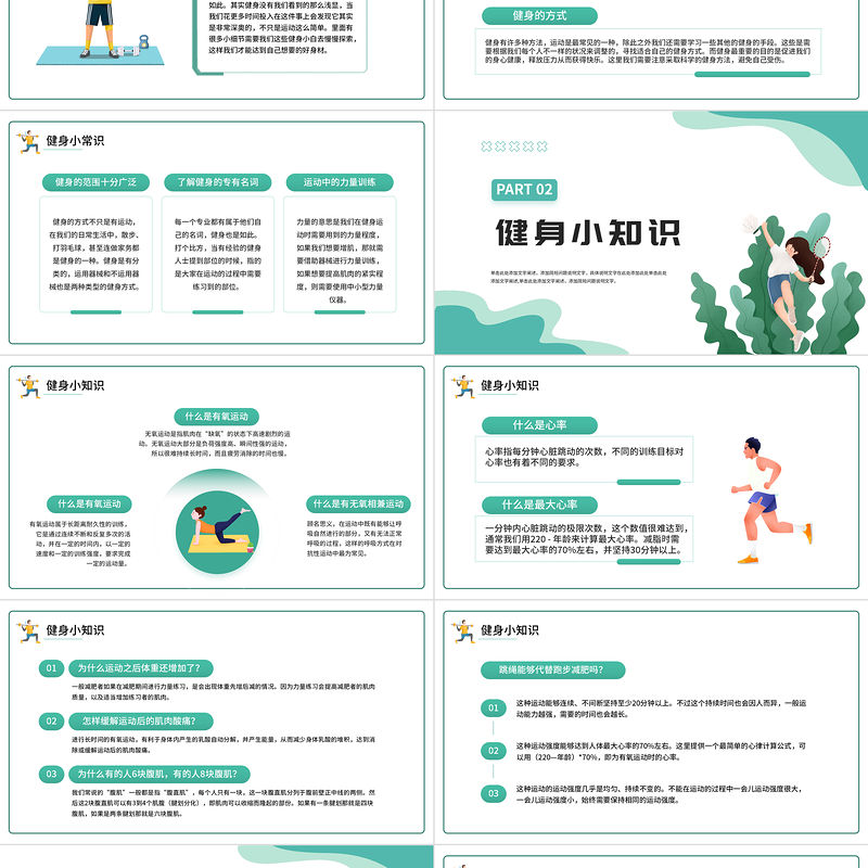 2022健身小科普PPT清新卡通風(fēng)生命不息運(yùn)動(dòng)不止課件模板 Array