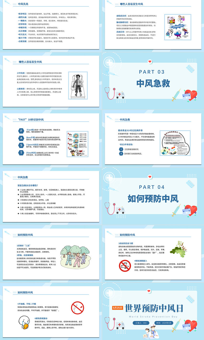 2022世界預防中風日宣傳PPT清新創(chuàng)意節(jié)日宣傳通用PPT模板下載