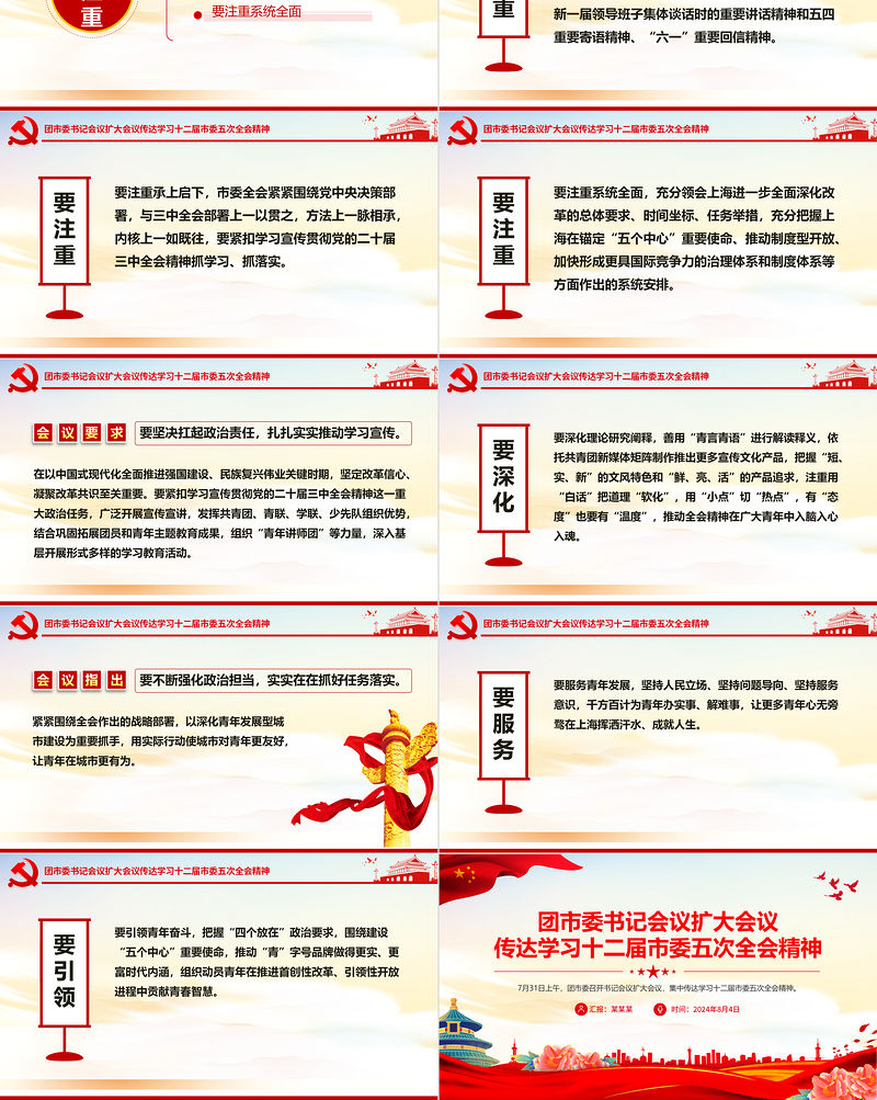 大氣創意團市委書記會議傳達學習十二屆市委五次全會精神PPT課件