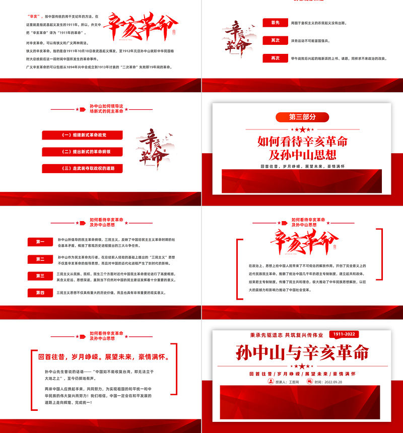 2022孫中山與辛亥革命PPT紅色簡約風辛亥革命111周年紀念孫中山先生主題班會課件模板 Array