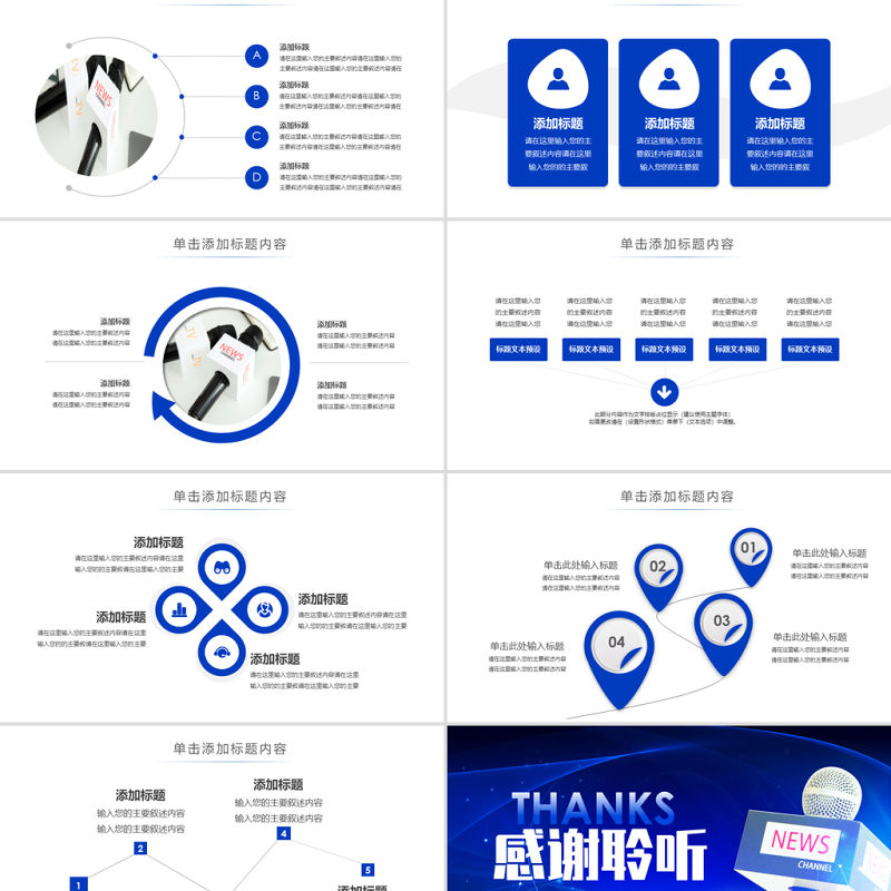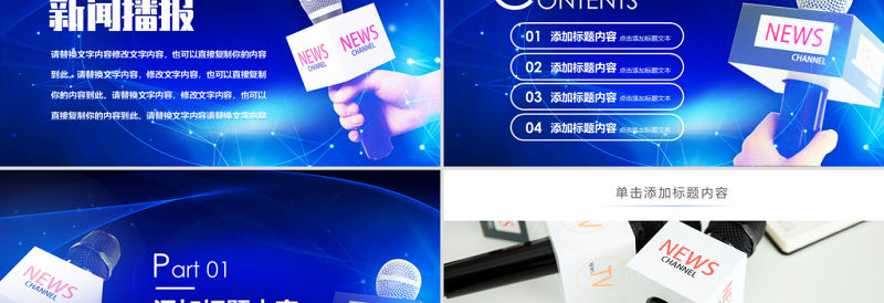 原創藍色大氣新聞聯播記者采訪ppt模板