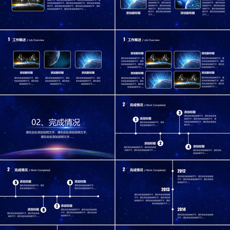 科技星空炫酷創意商業計劃書ppt模板幻燈片包含