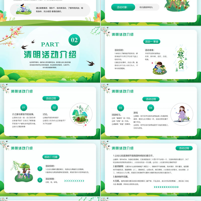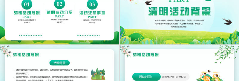 2022清明節活動方案PPT卡通風幼兒園清明節節日活動策劃活動結束課件模板