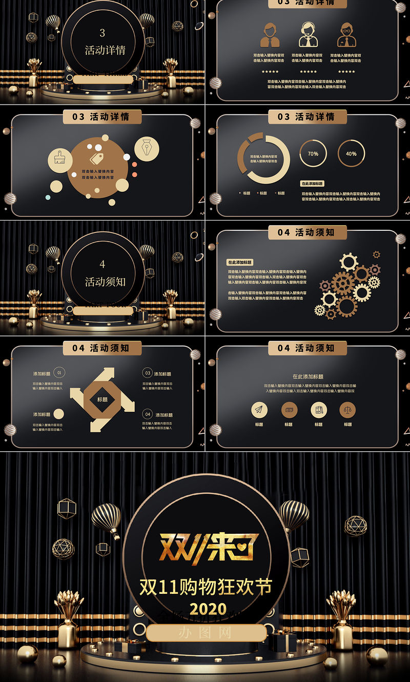 工圖網提供黑金奢華雙11電商促銷活動方案PPT模板供會員免費下載。更多精彩黨課PPT素材,盡在工圖網。