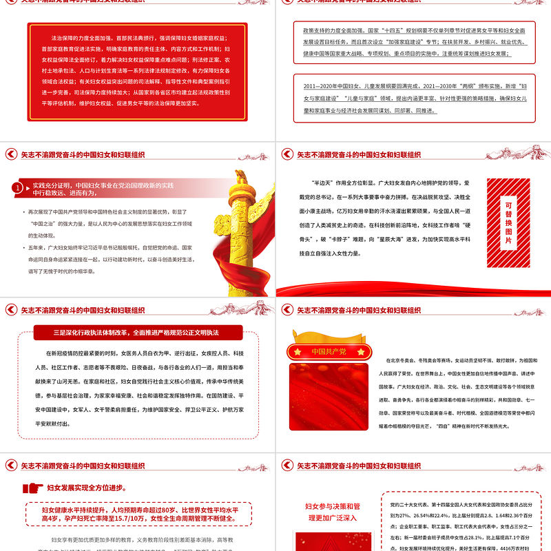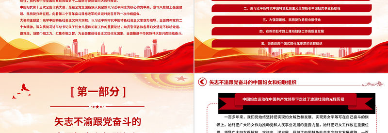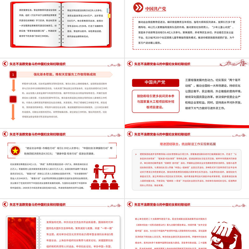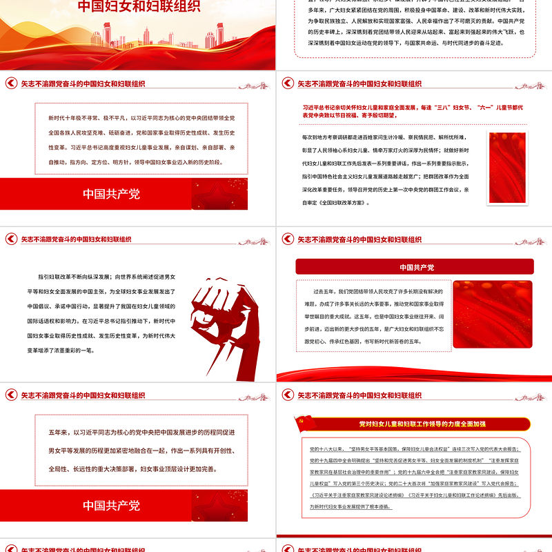 中國婦女十三大報告PPT精美大氣動員引領廣大婦女為強國建設民族復興而團結奮斗黨課 Array