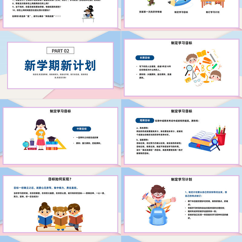 收心思路克服第一天的厭學情緒制定學習目標制訂學習計劃