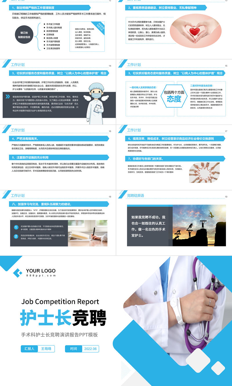 2022手術科護士長競聘PPT藍色簡潔知性風護士長崗位競聘晉升工作報告模板下載 Array