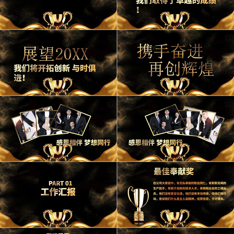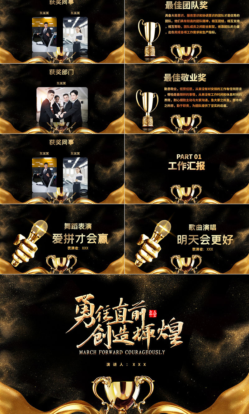 黑金奢華風勇往直前再創輝煌企業文化宣傳年會PPT模板 Array
