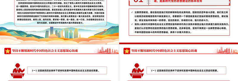 2023堅持不懈用新時代中國特色社會主義思想凝心鑄魂PPT大氣黨建風黨員干部學習教育專題黨課黨建課件模板 Array