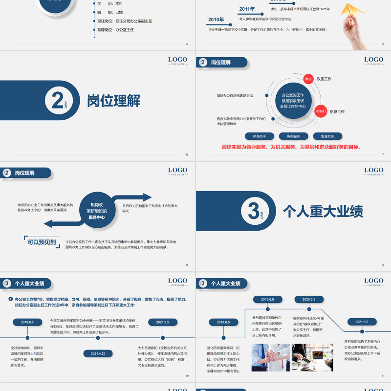 2022辦公室主任競(jìng)聘PPT藍(lán)色創(chuàng)意極簡(jiǎn)風(fēng)主任競(jìng)聘中層晉升答辯模板