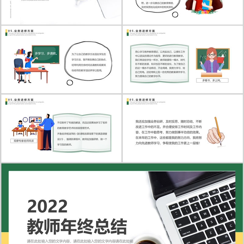 2022教師年終總結PPT綠色卡通風年終匯報工作總結通用模板
