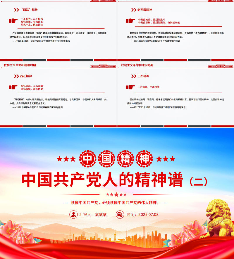 紅色精美中國精神PPT中國共產黨人的精神譜系一黨課課件包含
