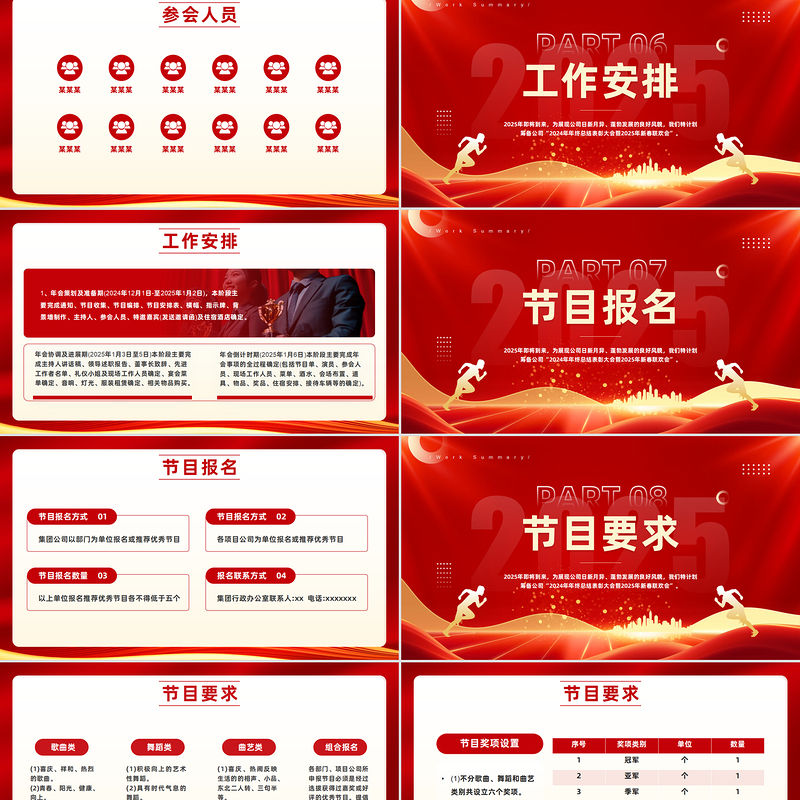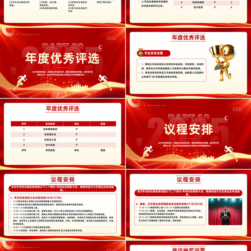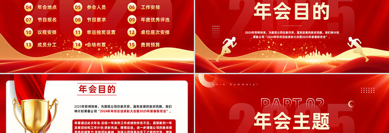 奔跑2022PPT黑金奢華年終頒獎典禮企業年會員工表彰大會舞臺背景模板包含