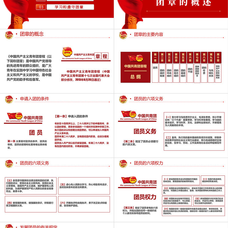 中國(guó)共青團(tuán)團(tuán)章學(xué)習(xí)解讀PPT紅色大氣共青團(tuán)團(tuán)支部主題黨課課件模板下載 Array