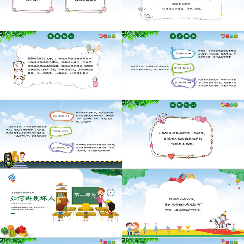 小學幼兒園卡通校園反恐防暴安全教育主題班會PPT 打擊 反恐防暴 反恐防爆 防爆 應急預案 防暴知識 公安 派出所 武警 部隊 防暴隊 展板 宣傳欄 反恐 知識宣傳欄 防暴 教育宣傳欄 110宣傳日 110宣傳日展板 教育 Array