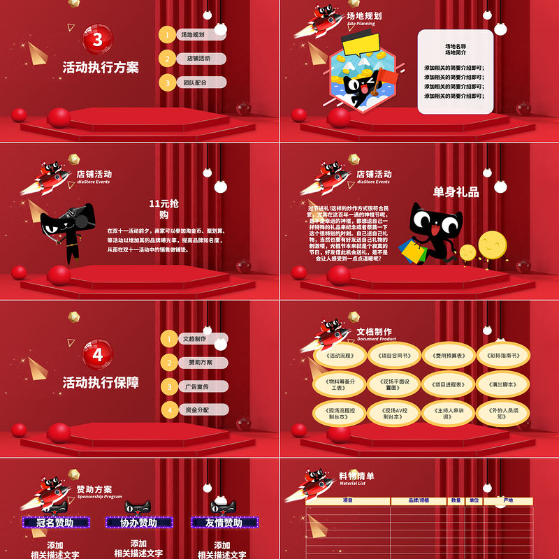 工圖網提供紅色喜慶雙十一活動策劃PPT模板供會員免費下載。更多精彩黨課PPT素材,盡在工圖網。