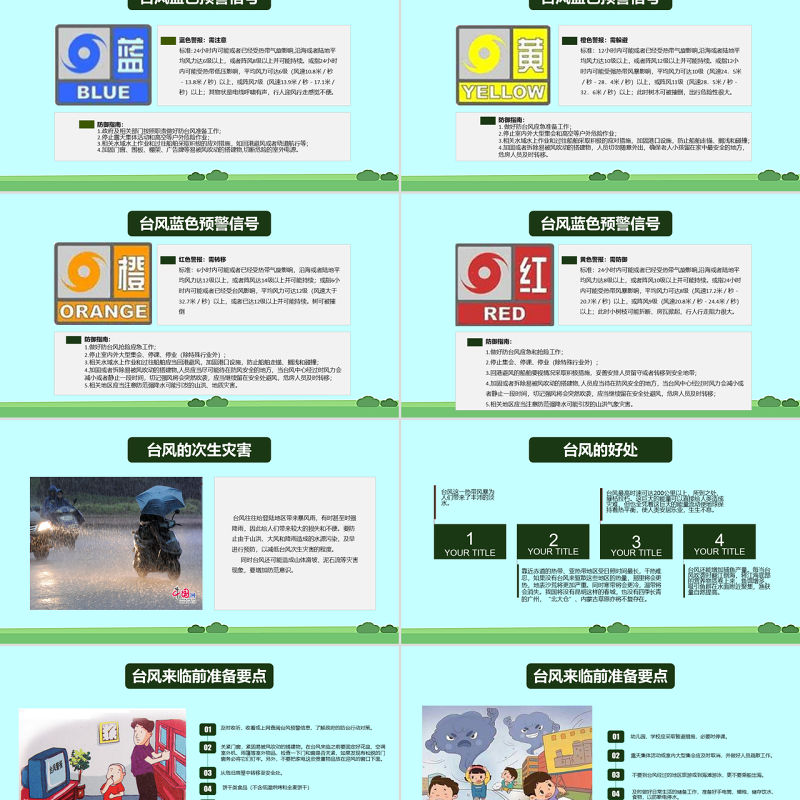 原創防御臺風防汛抗洪知識教育講座PPT模板-版權可商用