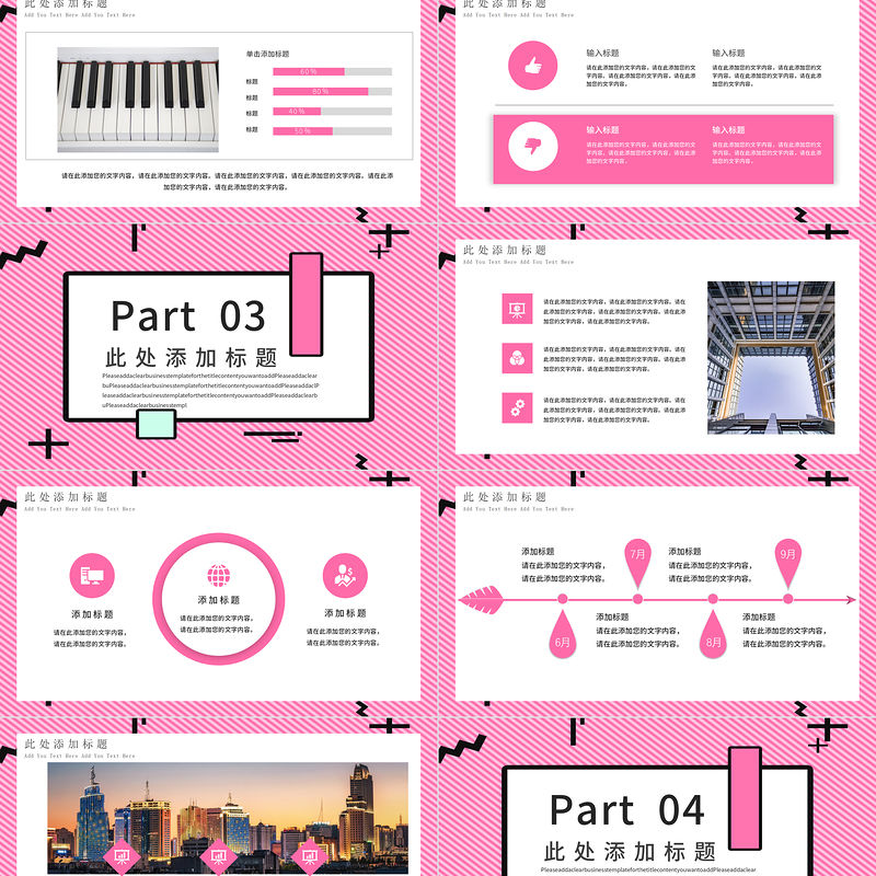 簡約孟菲斯風格志愿者活動策劃PPT模板包含