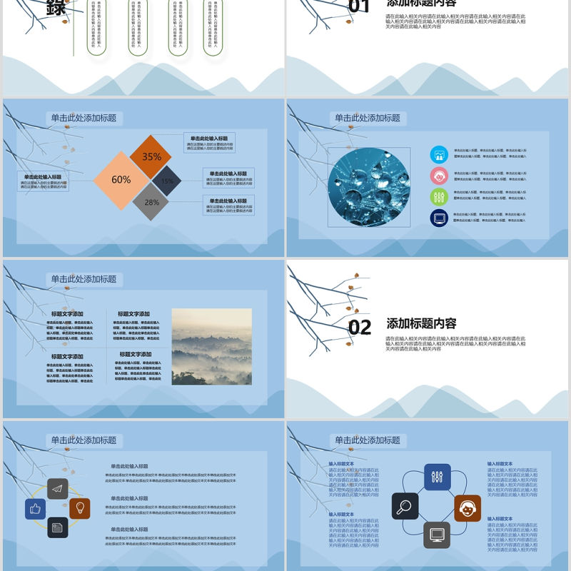 藍(lán)色,簡(jiǎn)約,二十四節(jié)氣,之霜降,PPT模板 Array