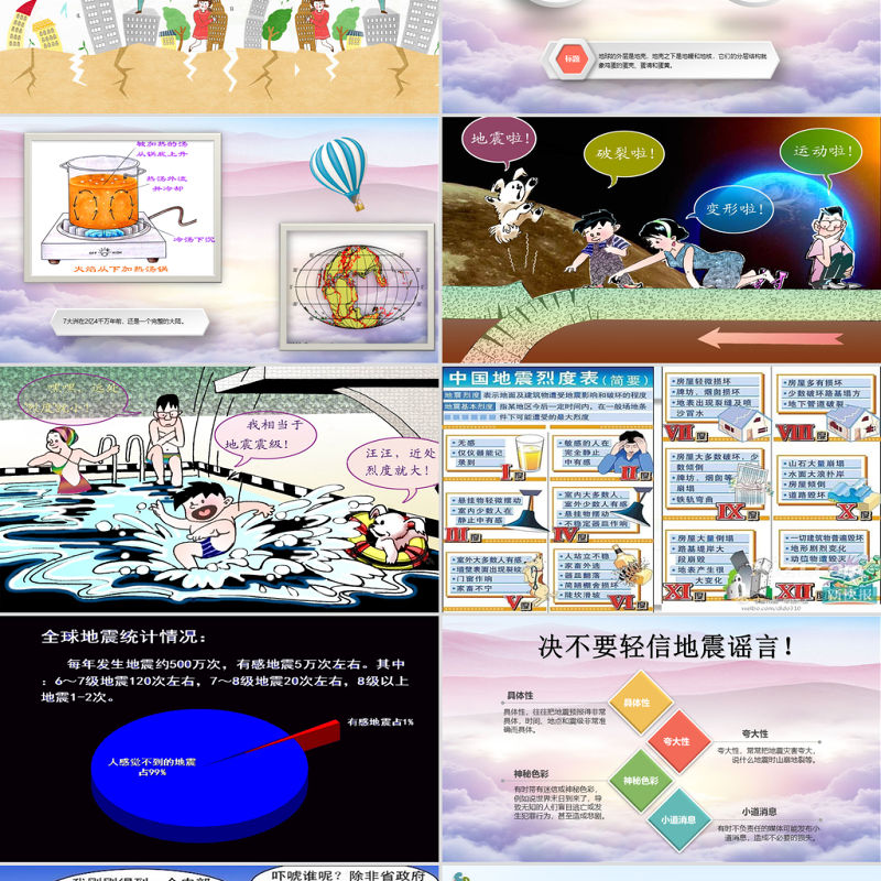 清新可愛防震減災應急知識宣傳活動PPT模板包含